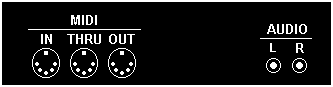 又多了一組MIDI使用的五孔插座,分別是MIDI IN,OUT,THRU(如下圖)。